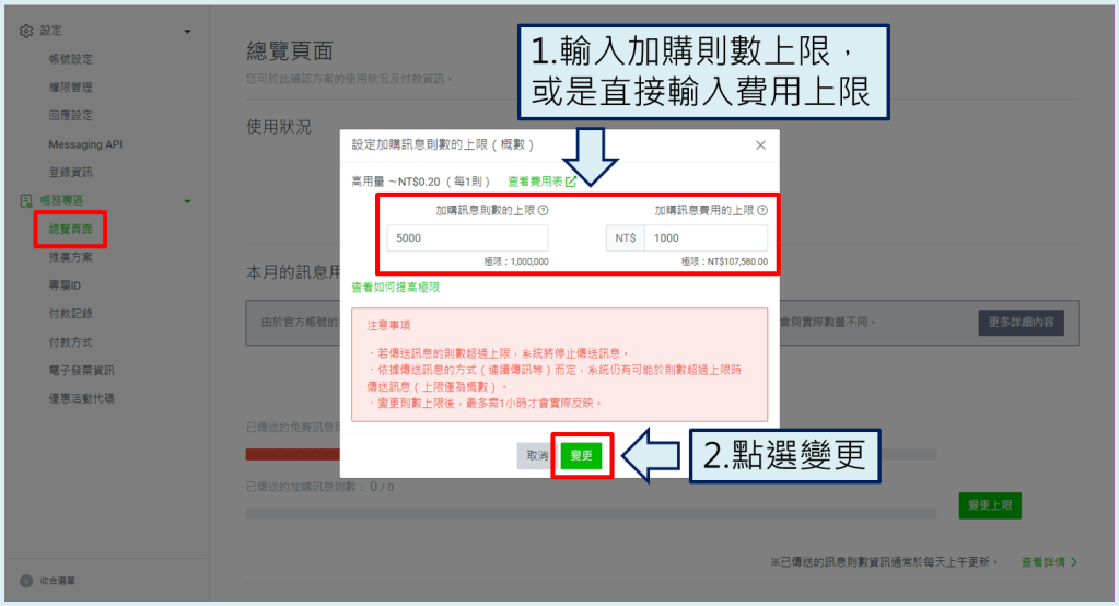 (3) 變更加購訊息則數上限的方法