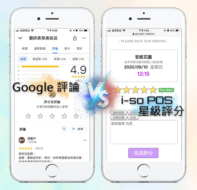 無論是美業經營者或是一般消費者,相信一定都聽過或使用過「Google評論」功能,當消費者想尋找一間沙龍店消費時,可能會查詢Google評論做為參考,開業的商家們則希望可以獲得良好的評論; 與 i-so POS 提供的「星級評分」功能,到底兩者之間有什麼不一樣呢?