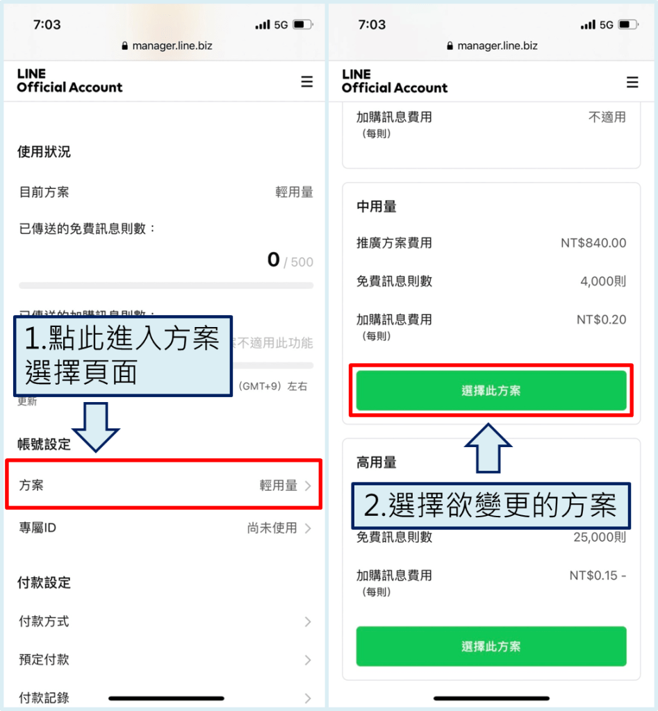 於手機變更官方帳號方案方式
