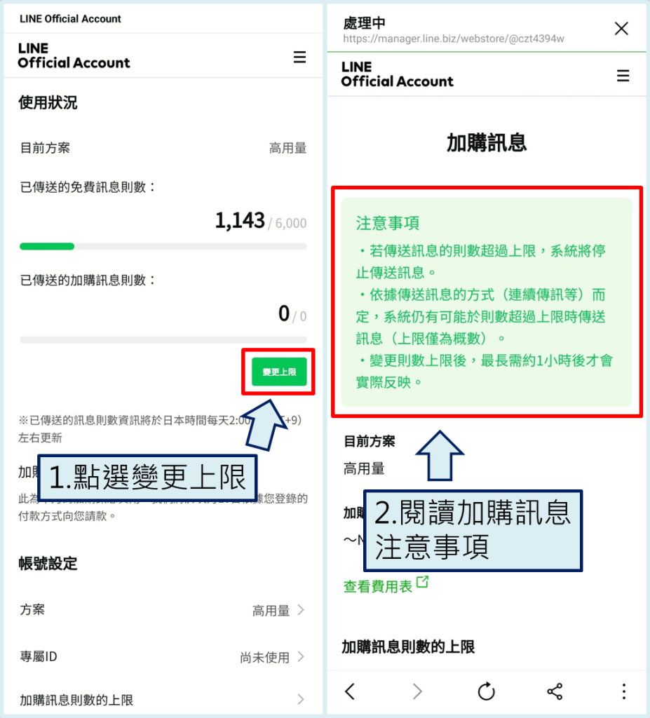 (3) 變更加購訊息則數上限的方法