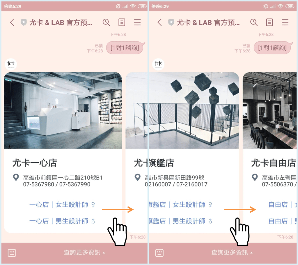(2) 若有多個店點,或一個店點中人員數量較多也不需要擔心,可以先做店點或人員的分層,引導顧客點選找到想要諮詢的對象
