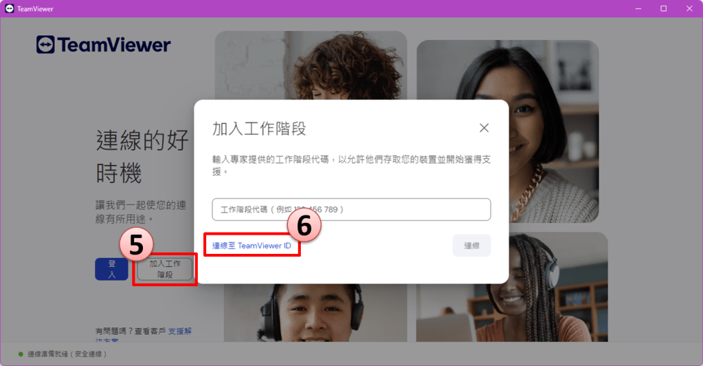 未來需要開啟 TeamViewer 時,您可以透過桌面捷徑,開啟後畫面如下圖所示,程式會自動連線到遠端伺服器並取得一組 ID 和 密碼,接下來請保持該程式為開啟狀態 (請勿關閉此視窗),並將ID與密碼告知系統服務專員即可