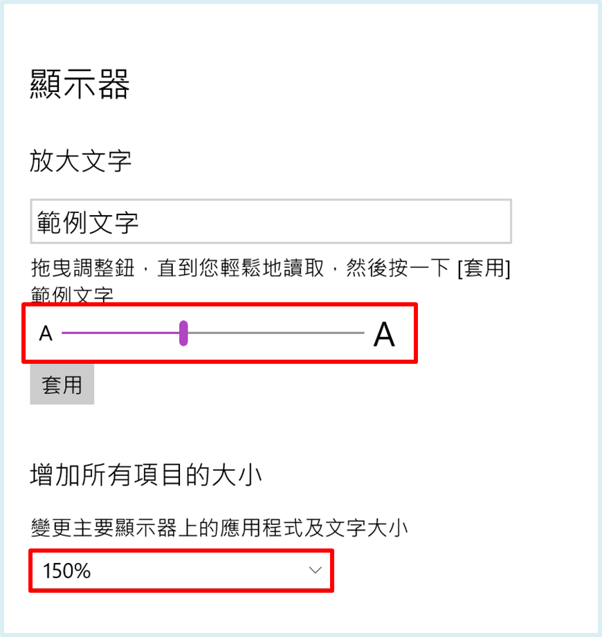 一般操作電腦,如果希望讓文字顯示大一點,會去調整文字大小,或是顯示比例