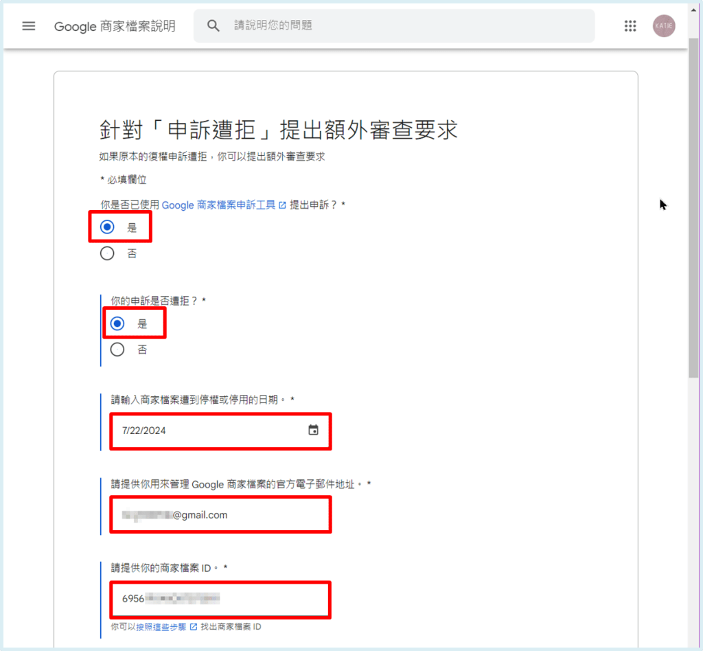 此時可以針對「申訴遭拒」提出額外的審查要求:點此連結。依序填寫頁面上要求的資訊