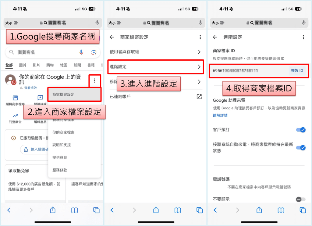 其中〝商家檔案 ID〞可以點攔位下方的步驟說明參考取得方式